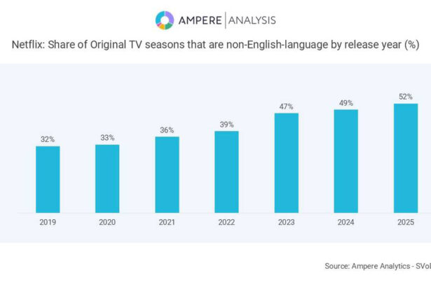 According to data from Ampere Analysis, 52% of Netflix’s original TV releases in 2025…