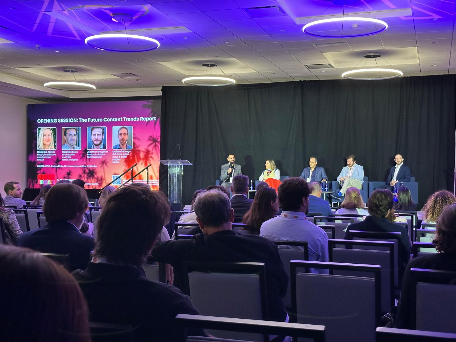 Speakers were OMDIA’s Head of Media and Entertainment Maria Rua Aguete, Parrot Analytics’ VP of Applied Analytics Alejandro Rojas, Plum Research’s Research Director Jonathan Broughton, and Fabric’s Data, Origin Nexus, and Origin Insights SVP Luciano Zarlenga.