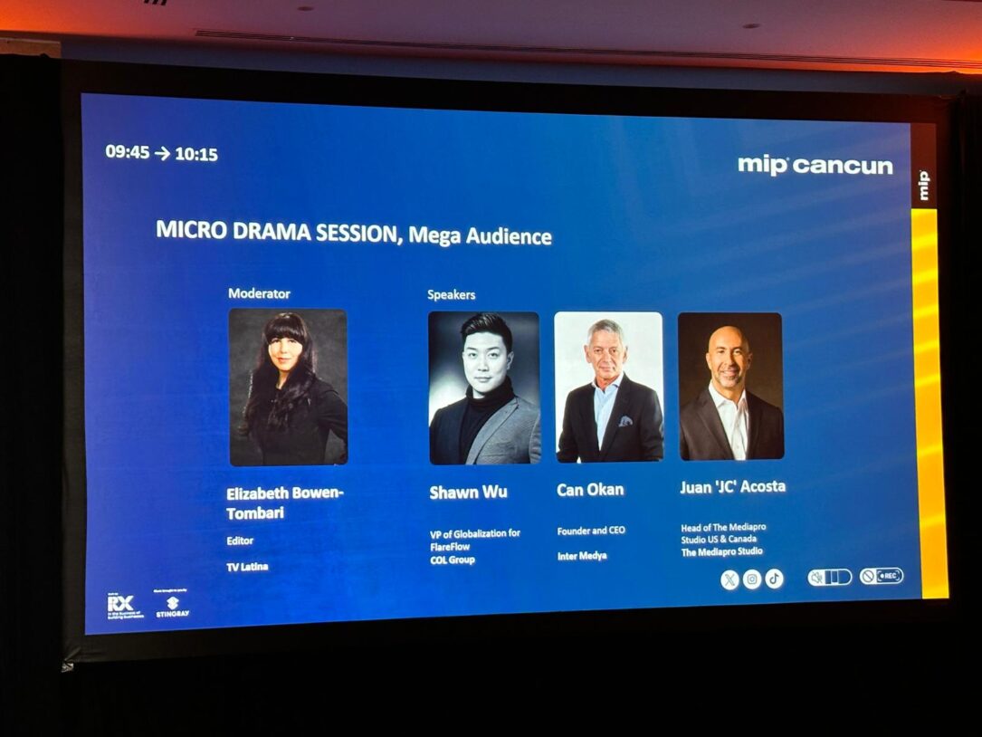MIP Cancun 2025 continued its strong run on Wednesday, November 19, with one of the week’s most talked-about sessions: “Micro Drama: Mega Audience.” The panel brought together key industry figures, featuring Inter Medya’s Founder and CEO Can Okan, FlareFlow’s VP of Globalization Shawn Wu, and The Mediapro Studio US & Canada’s Head Juan “JC” Acosta, moderated by Elizabeth Bowen-Tombari, Editor of TV Latina.