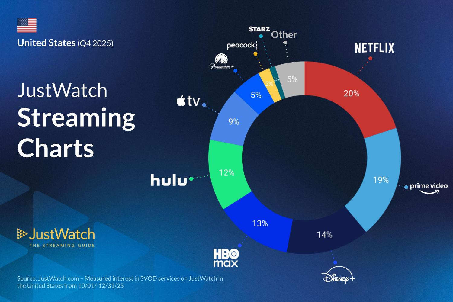 - New US market leader: Netflix (20%) overtook Prime Video (19%) in the last quarter of 2025, according to data released by JustWatch